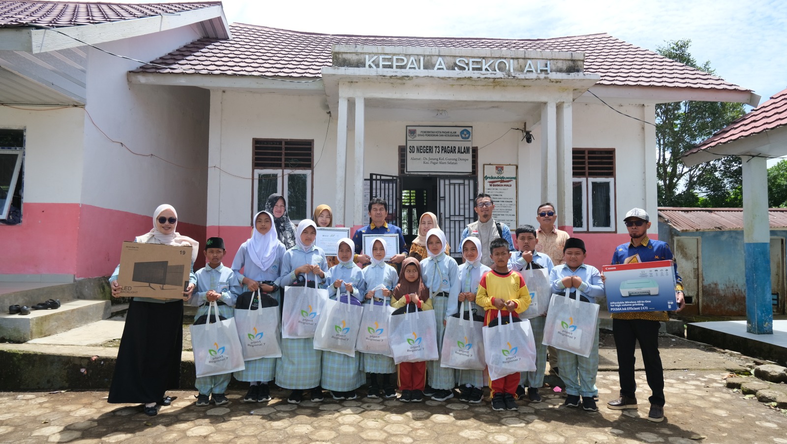 Sumatera Selatan (BP) : PT Perkebunan Nusantara I (PTPN I) Regional 7 menyalurkan bantuan pendidikan kepada siswa Sekolah Dasar (SD) di Unit Kebun Pagar Alam sebagai bagian dari Program Tanggung Jawab Sosial dan Lingkungan (TJSL) Pilar Sosial.