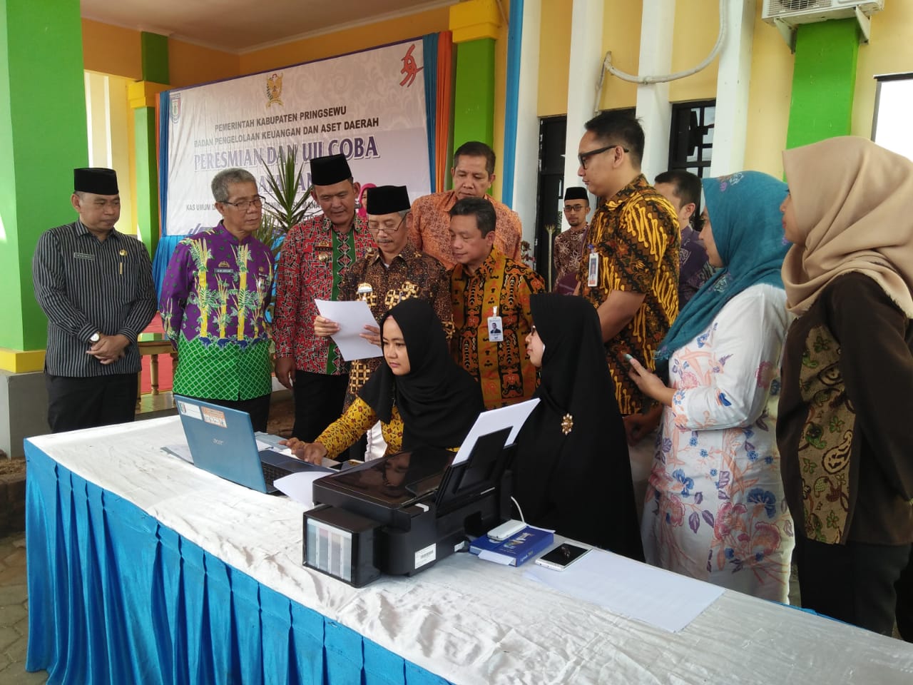 tersebut, dilakukan ujicoba layanan oleh Bupati Pringsewu, serta saling tukar