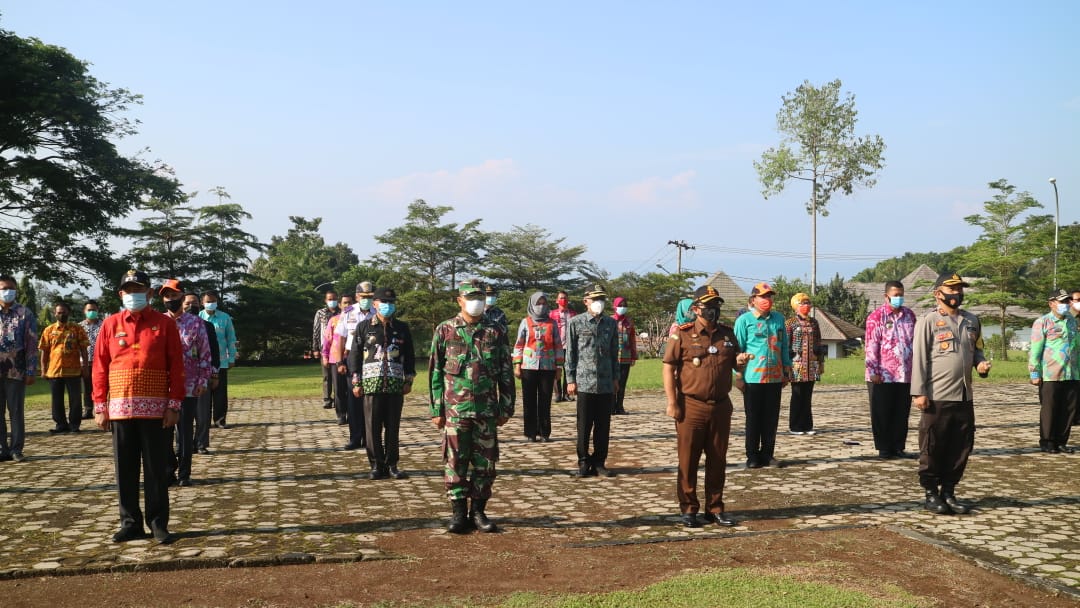 "Salah satu upaya dalam meningkatkan kesadaran untuk melaksanakan protokol kesehatan saya harap kita semua dapat menggunakan Jargon JUMAWAS (Jujur dan Mawas Diri Covid 19 ) yaitu Jujur apabila dalam interaksi sosial kita ada yang terjangkit Covid-19, serta melakukan ISOMA (Isolasi Mandiri) dan segera lapor kepada petugas kesehatan dan mawas diri dimanapun, kapanpun selalu waspada dan menerapkan protokol Kesehatan,"tegas Bupati.