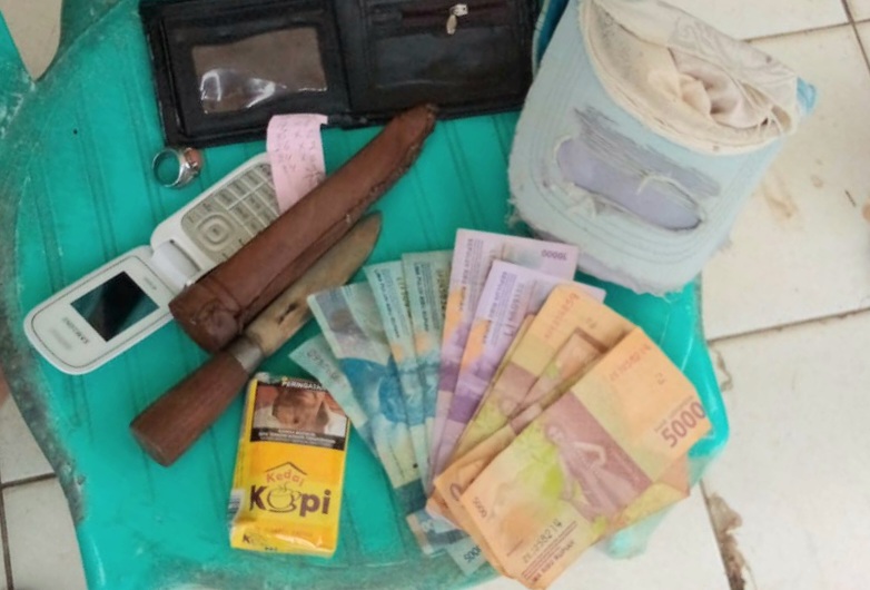Selain tersangka, lanjut dia, dalam penangkapan tersebut turut diamankan barang bukti berupa sebilah pisau garpu warna coklat gagang kayu, uang tunai Rp250 ribu, handphone merk Samsung dan dompet warna hitam berisi KTP tersangka.