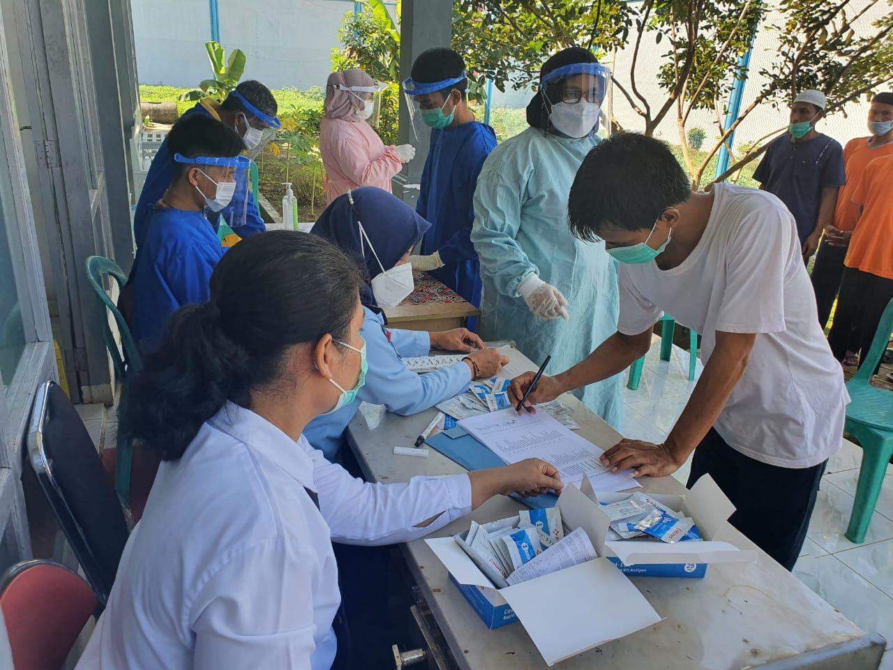 Swab dilakukan oleh 4 (empat) orang dari satgas Puskesmas Negara Batin dan 3 (tiga) orang petugas kesehatan Lapas Kotaagung.