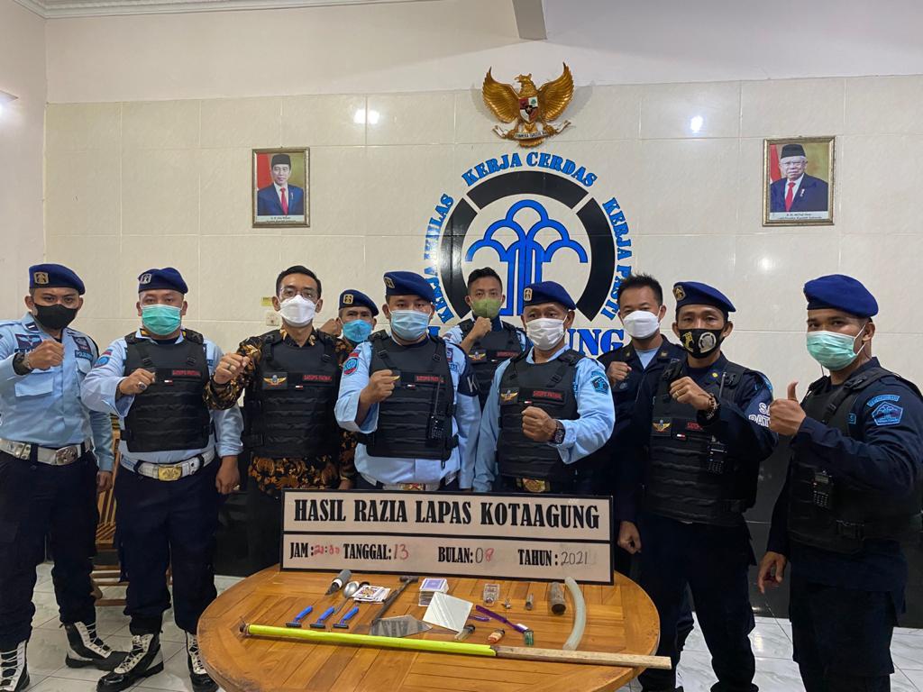 Ditempat yang sama, Kepala Kesatuan Pengamanan Lapas KPLP Lapas Kota Agung M.Iqbal, mengatakan dengan tetap mematuhi protokol kesehatan, pelaksanaan kegiatan razia penggeledahan kamar hunian warga binaan Lapas Kota Agung telah selesai dilakukan, berjalan lancar, tertib, aman dan kondusif, dan tidak ditemukan barang-barang terlarang seperti narkoba dan handphone.
