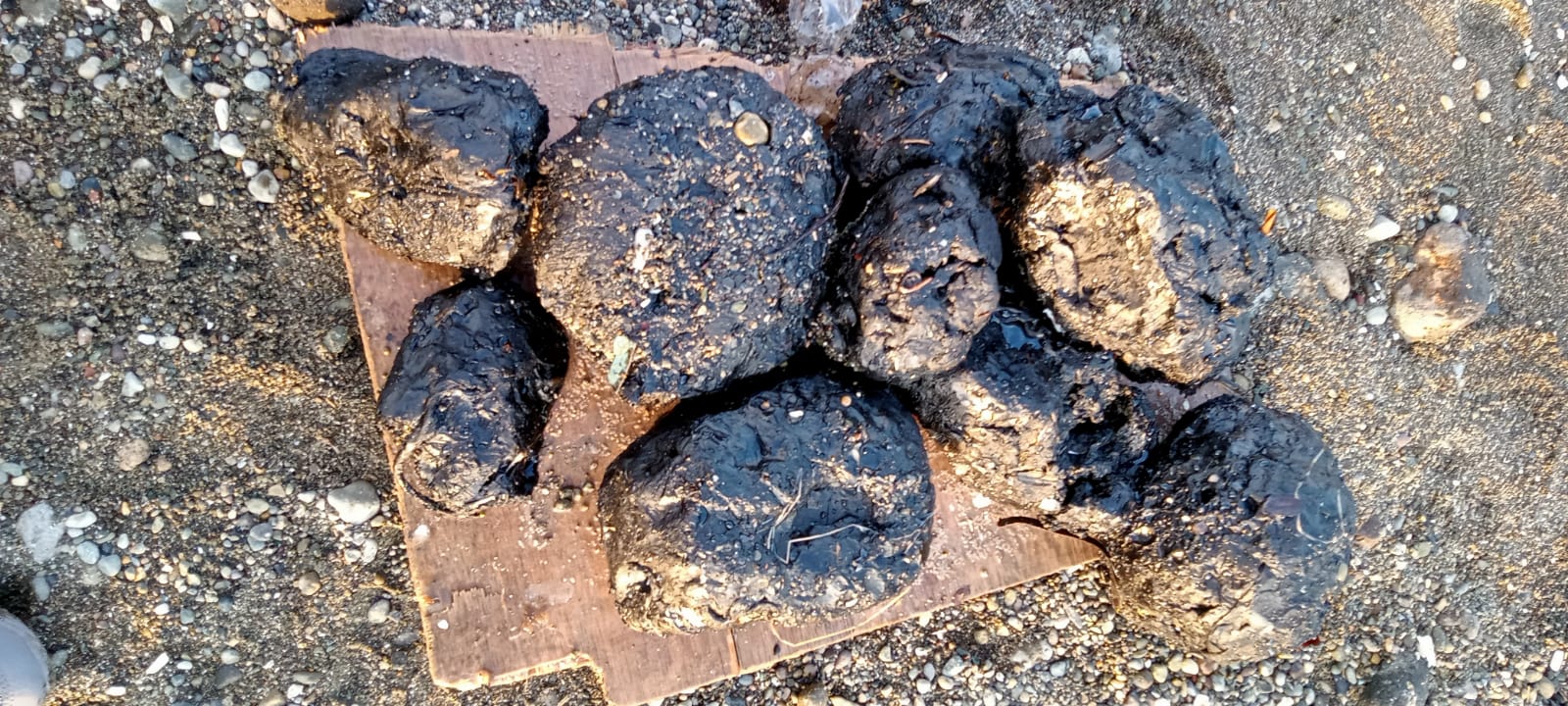 Menurut keterangan Abi, warga sekitar pantai menjelaskan, limbah ini mulai terlihat di tepi pantai setelah terjadi gelombang besar dan angin kencang beberapa hari ini.