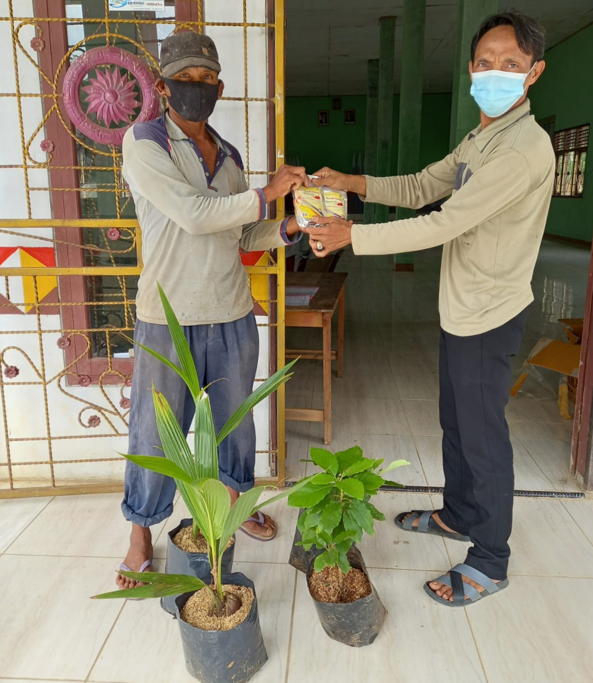 Penyerahan bantuan bibit. (Foto. Dok Pekon Gunung Tiga)