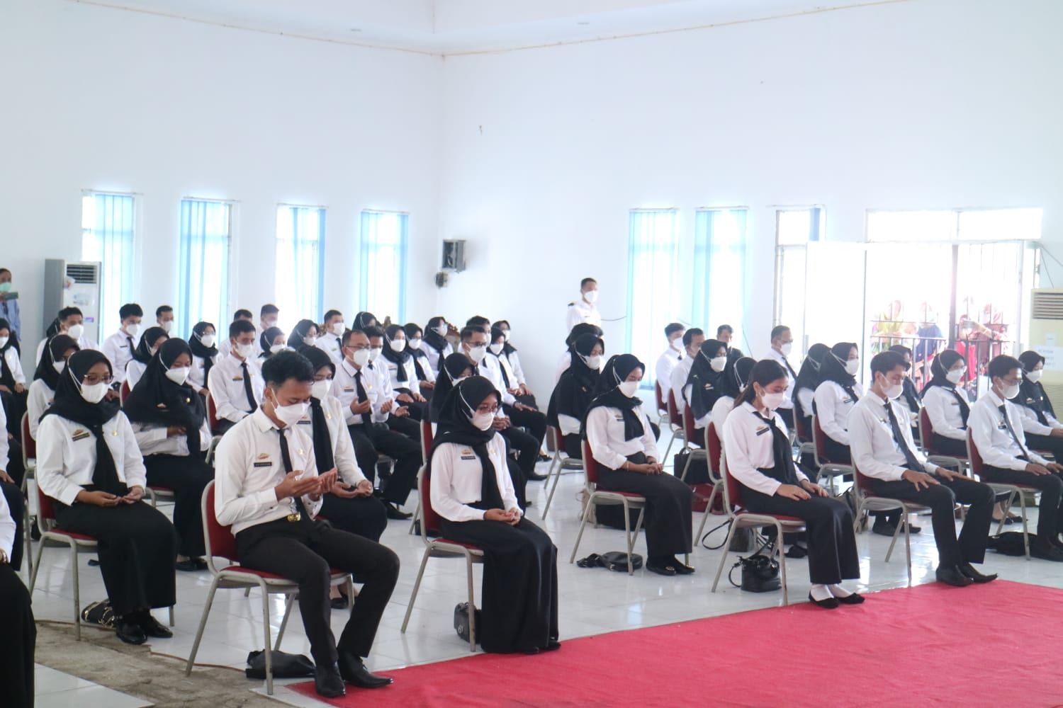 Turut hadir mendampingi Bupati Tanggamus, Asisten Bidang Administrasi Jonsen Vanisa, Inspektur Ernalia, Kepala Badan Kepegawaian dan Pengembangan Sumber Daya Manusia (BKPSDM) Aan Derajat, Kepala OPD, serta Calon PNS Formasi Tahun 2021 Pemkab Tanggamus.