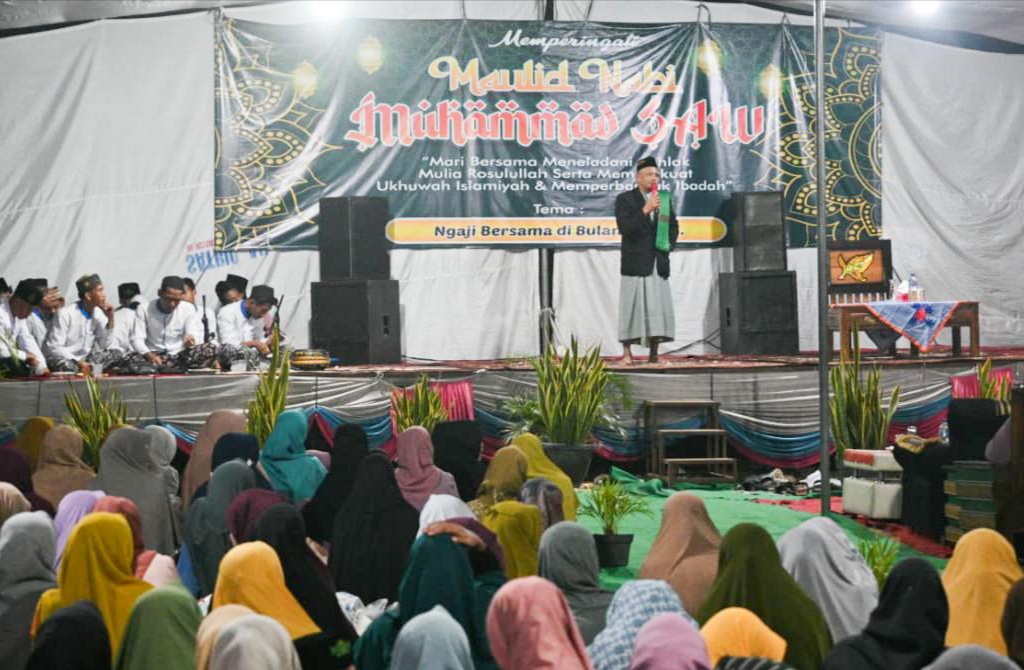 Pesawaran (BP) : Ratusan masyarakat Desa Sindang Garut, Kecamatan Way Lima, memadati acara pengajian Maulid Nabi Muhammad SAW 1447 Hijriah yang digelar pada Kamis (4/9/2025) malam.
