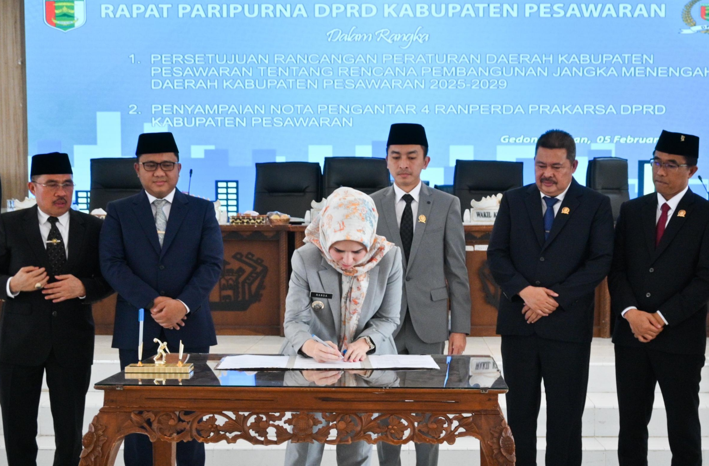 Dalam agenda persetujuan Ranperda RPJMD, laporan pembahasan disampaikan oleh Badan Pembentukan Peraturan Daerah (Bapemperda) DPRD Kabupaten Pesawaran, dilanjutkan dengan penandatanganan nota kesepahaman bersama antara DPRD dan Pemerintah Daerah. Serta kelayakan Ranperda RPJMD untuk dapat disetujui dan ditetapkan menjadi Peraturan Daerah.