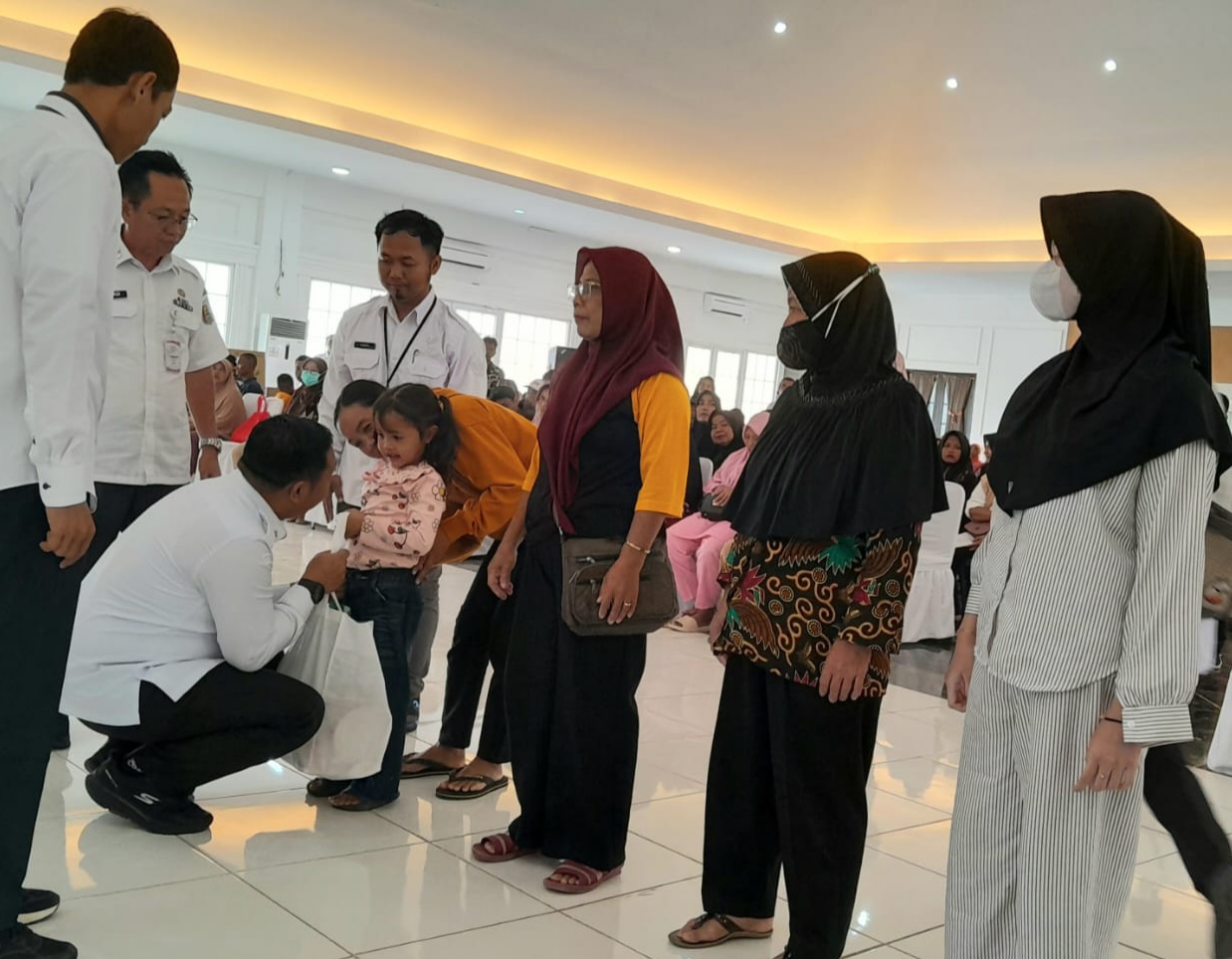 Pesawaran (BP) : Wakil Bupati Pesawaran Antonius Muhammad Ali, bersama Kepala Sentra Handayani Jakarta Hisyam Cholil, menyerahkan bantuan Asistensi Rehabilitasi Sosial (Atensi), kepada 303 penerima manfaat di Kabupaten Pesawaran.