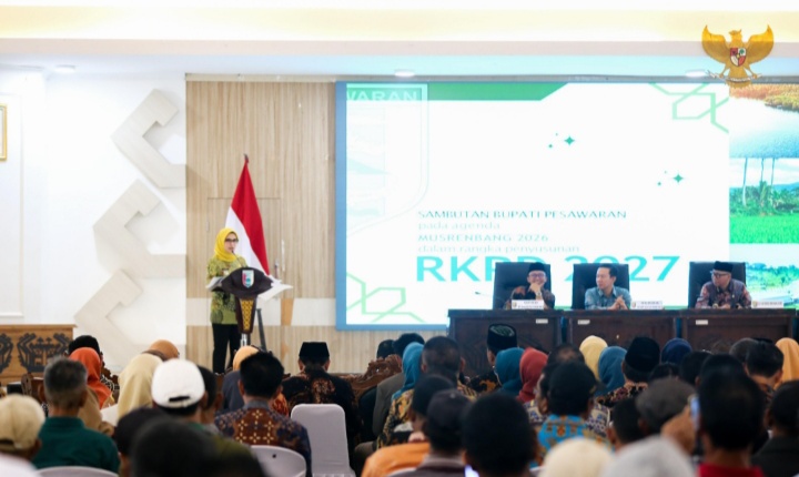 Diketahui, Pemkab Pesawaran menggelar Musrenbang RKPD 2027 dengan mengambil tema “Akselerasi Pertumbuhan Berkualitas melalui Peningkatan dan Pemerataan Infrastruktur dan Sarana Prasarana Pelayanan Publik untuk Pembangunan Ekonomi Inklusif dan Berkelanjutan.”